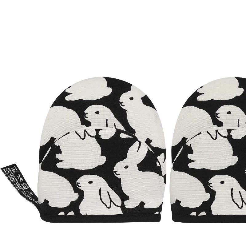 赤ちゃんうさぎが繰り返し登場する「Little Black Bunnies」パターンのキッチングローブ。