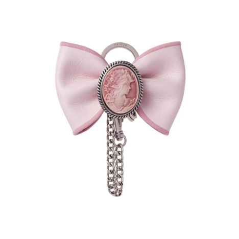 柔らかなリボン×シルバーカメオ×チェーンの組み合わせ。