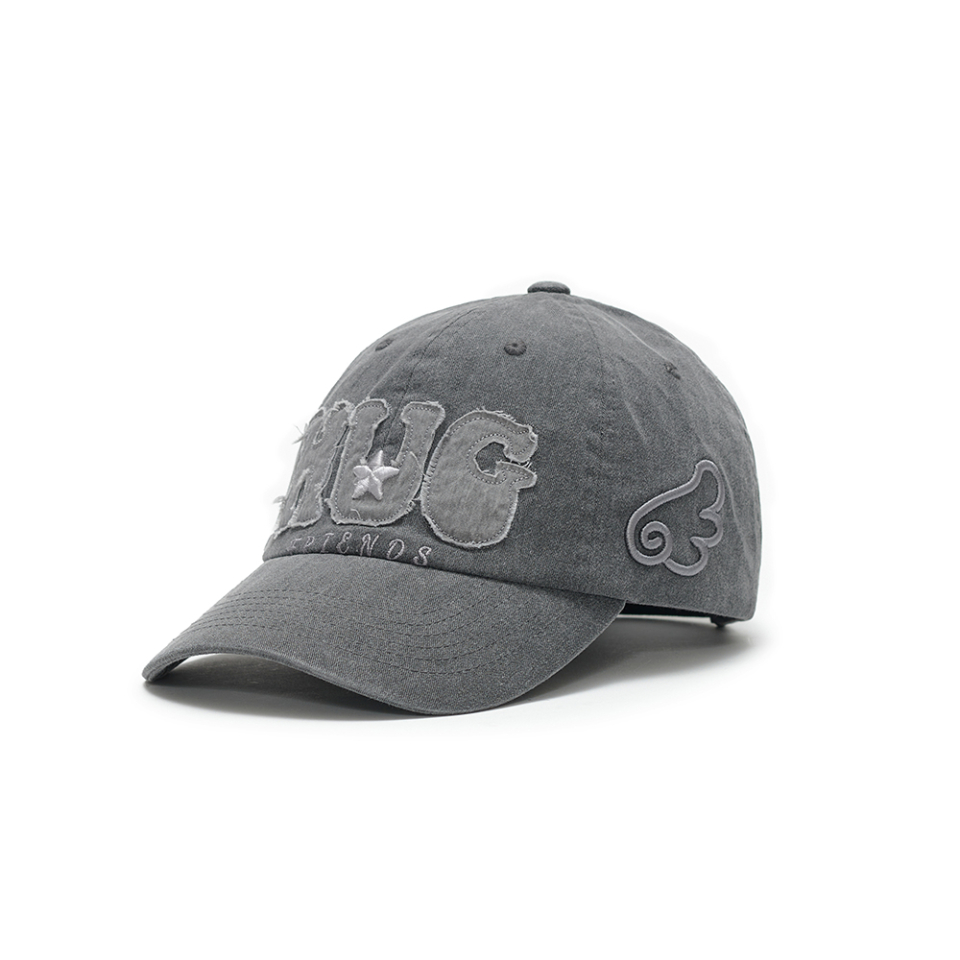 シンプルなチャコールキャップに羽刺繍をプラス。