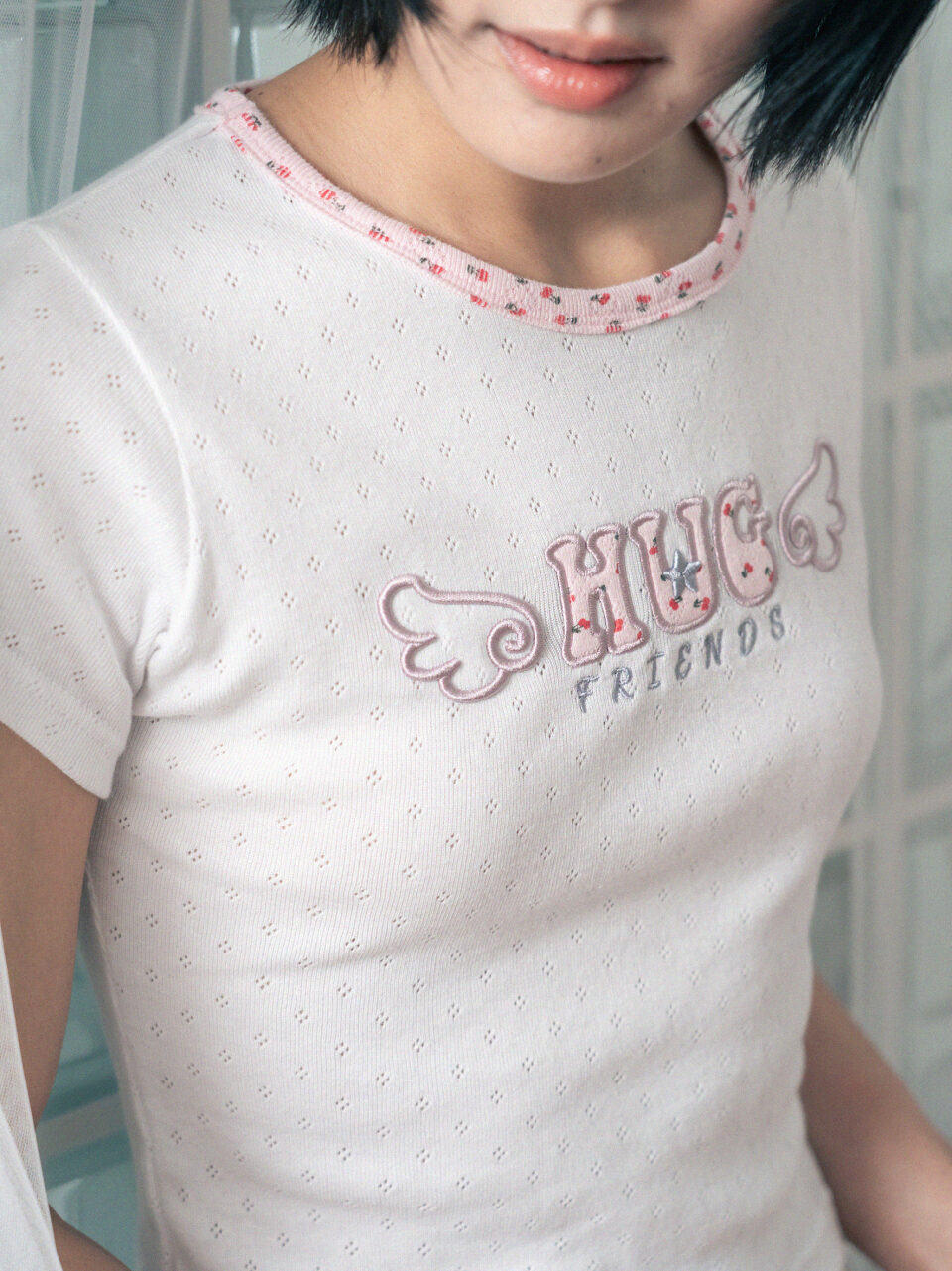 ホワイトTに羽モチーフ刺繍がワンポイント🪽
