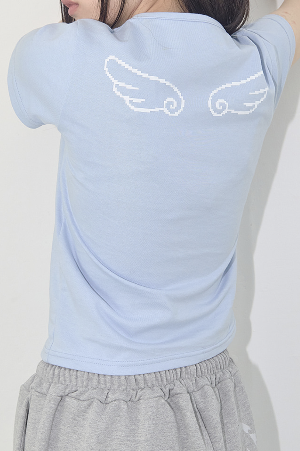 ライトブルーのクロップドTは背中に小さな羽刺繍♡