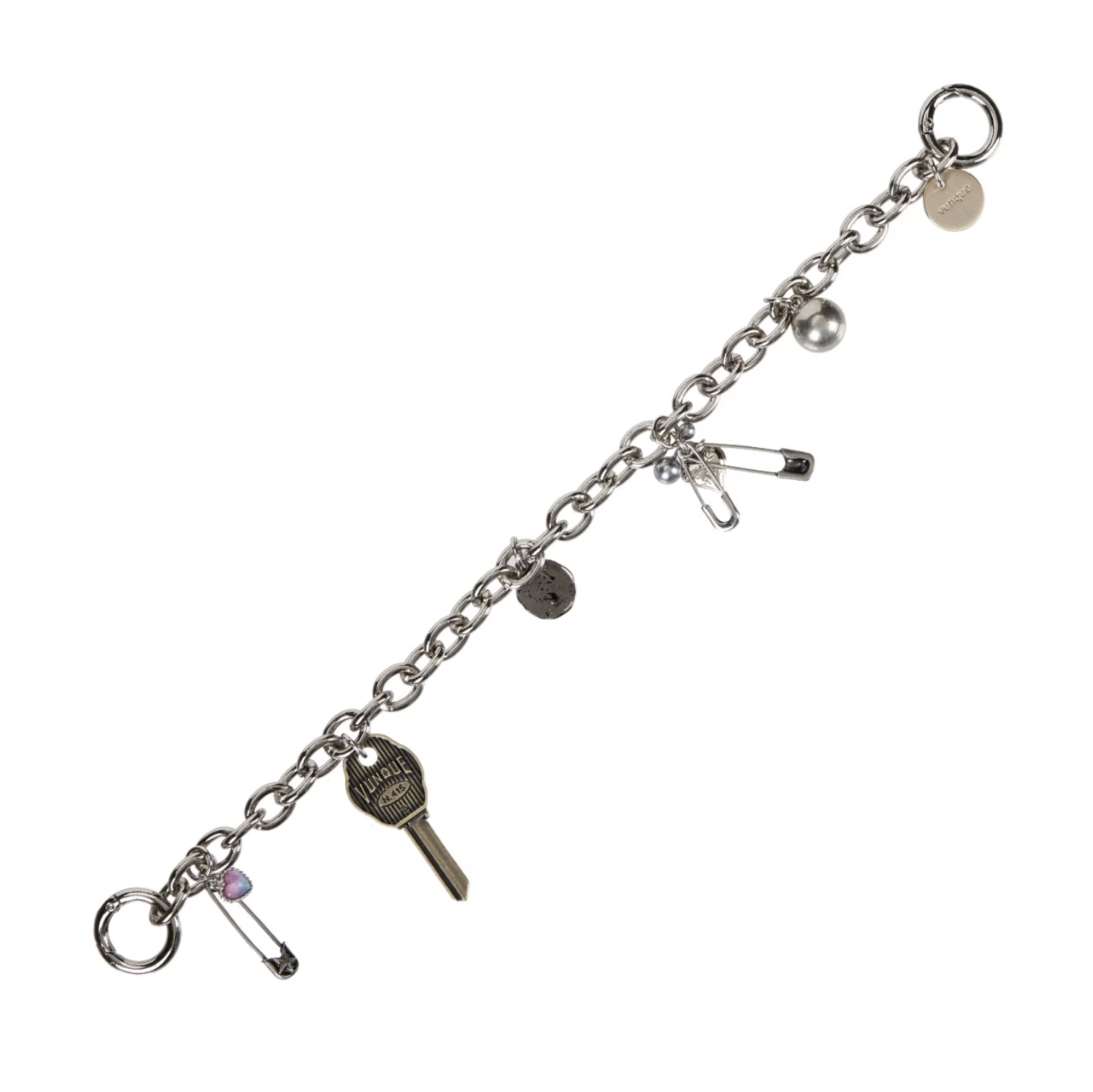 ボリューム感のあるチェーンに、キーやオブジェモチーフを組み合わせたデザイン。
