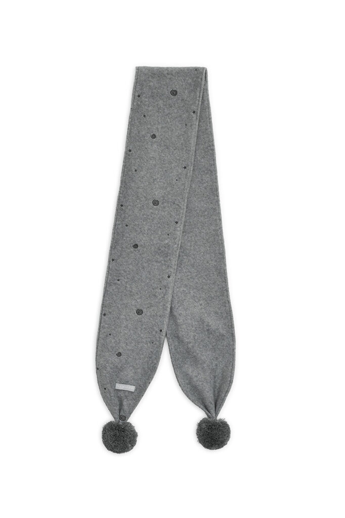 もこもこのフリース生地に、小さな刺繍パターンを散りばめたマフラー。